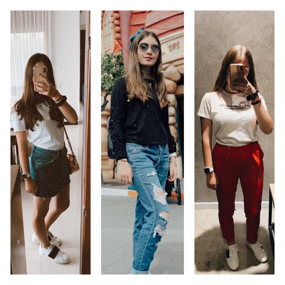 Estos son los más básicos ya que teniendo estas dos prendas puedes formar más de 10 outfits en tu cabeza, ya sea que le agregues una chaqueta, accesorios, una bolsa o zapatos, el outfit cambiará totalmente.